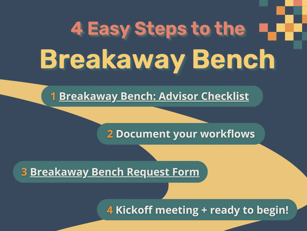 The Breakaway Bench is a flexible team of qualified, vetted Cadencia accountants who work exclusively with Breakaway. Advisors can request part-time or full-time support, with the ability to add more hours as they scale.