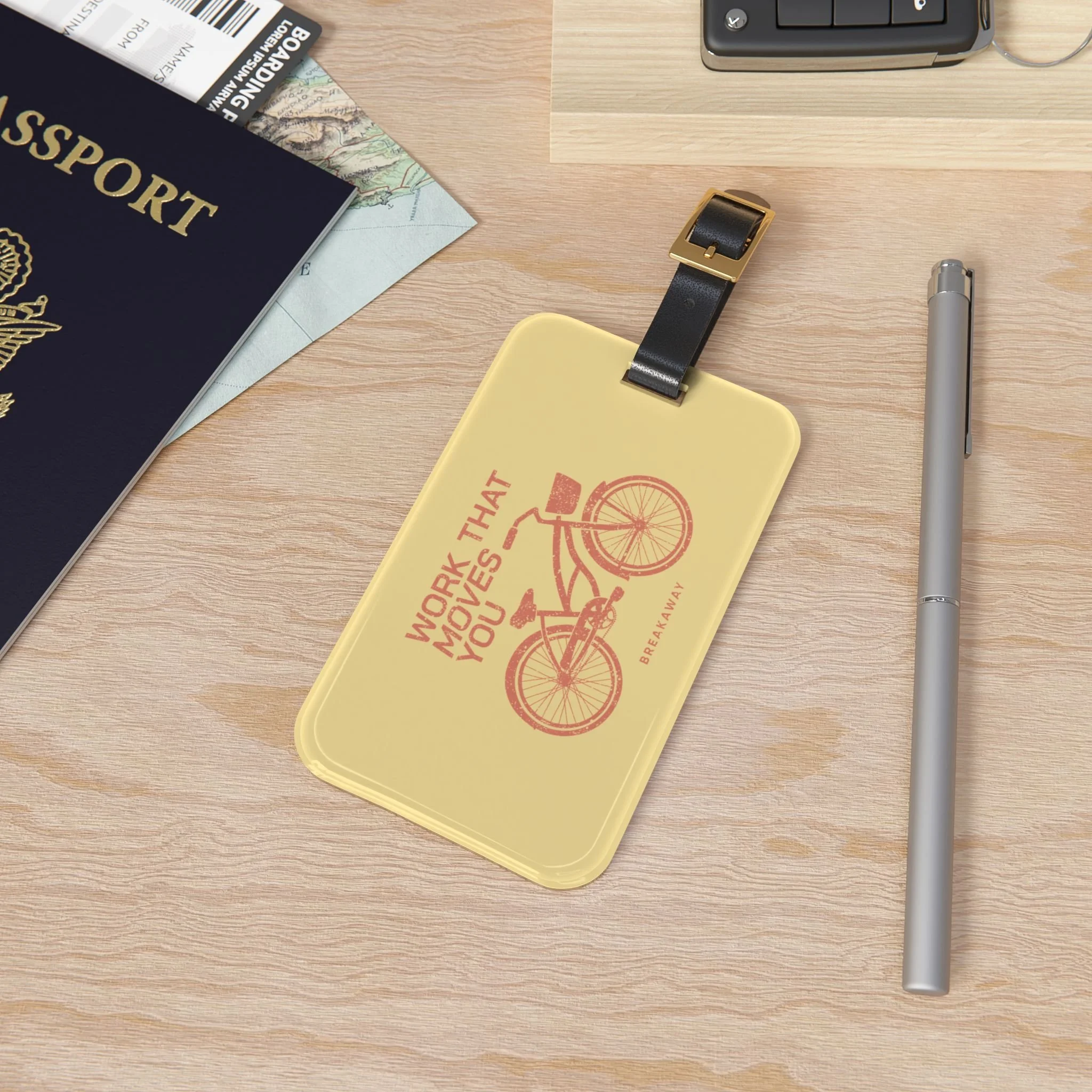 Pink/Yellow Work That Moves You Luggage Tag
